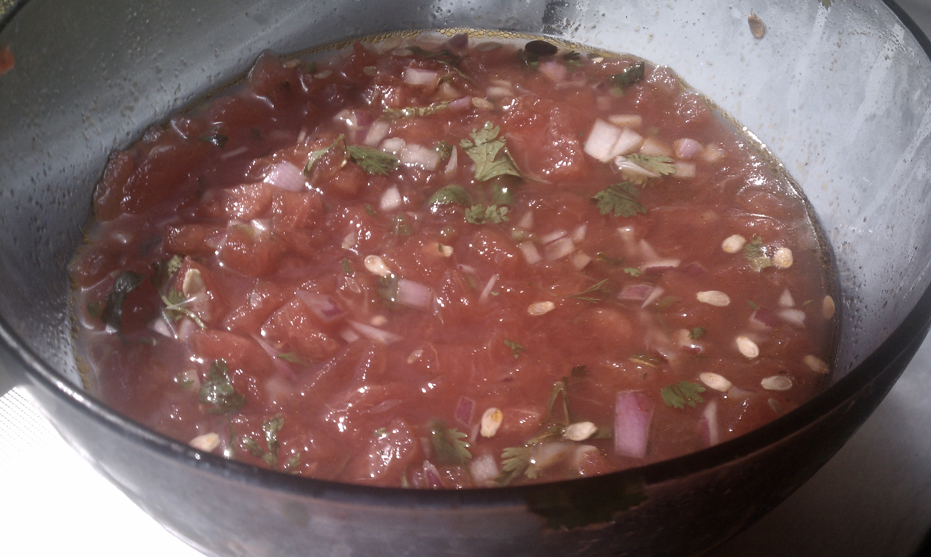 In strange and unexpected tun of events, the watermelon salsa ended up locked in the garage. I had put it in the garage refrigerator and when people started coming over, the garage door wouldn’t open with the remote. There is no side door, so my aunt had to call a repair person to come fix it. We got the salsa out once everyone was done with their tacos, but before dessert.