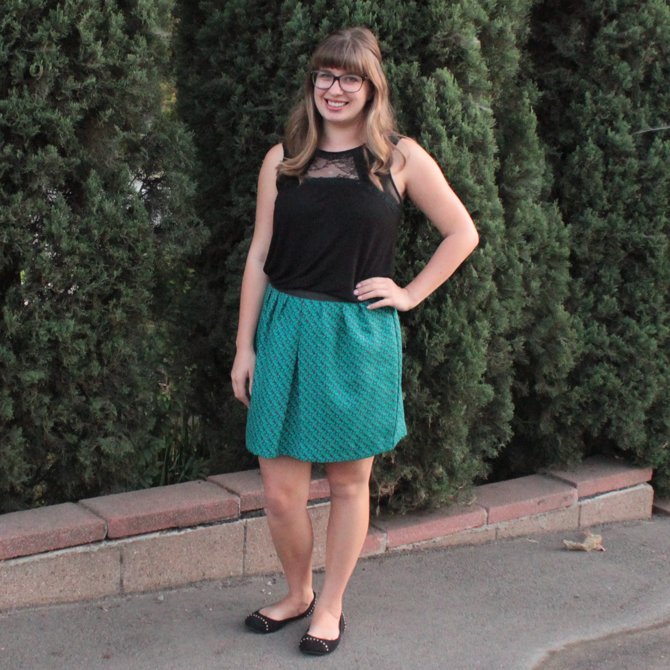 wearing: Glasses/Bonlook, Shirt/H&M, Skirt/Target, Shoes/Target