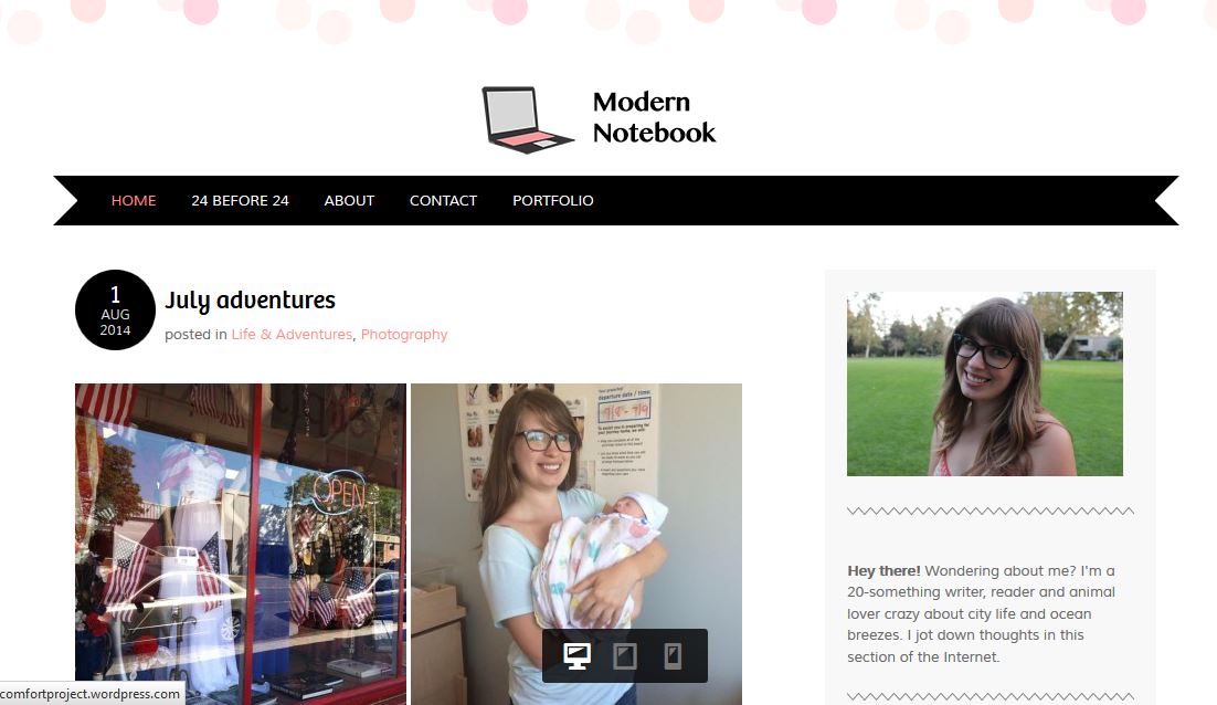 Can you see the changes? It’s like one of those Spot the Differences challenges. Mainly, I wanted to make the site look more like my own and less like the theme because it is really common. My favorite colors are pink and gray, so I used those throughout the site. Even though I love pink and I feel like it goes with Modern Notebook, I wanted to minimize it while keeping it on as an accent color.