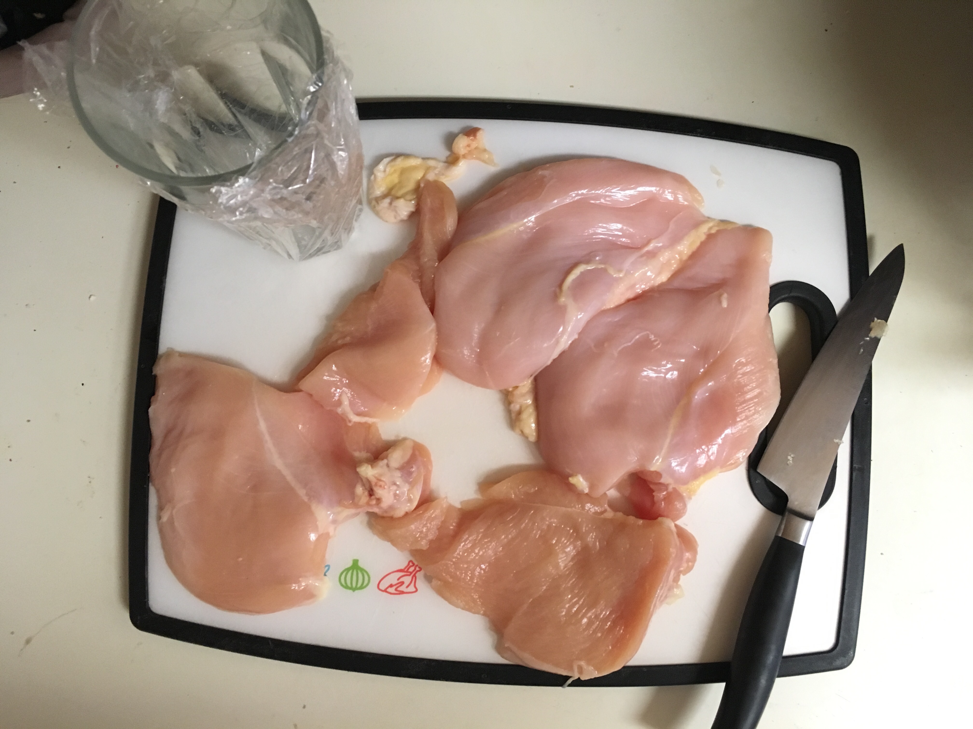 Pat the chicken breasts dry, then pound them to an even thickness using the bottom of a jar, bottom of a glass, or a meat pounder. Sprinkle them on both sides with salt and pepper.