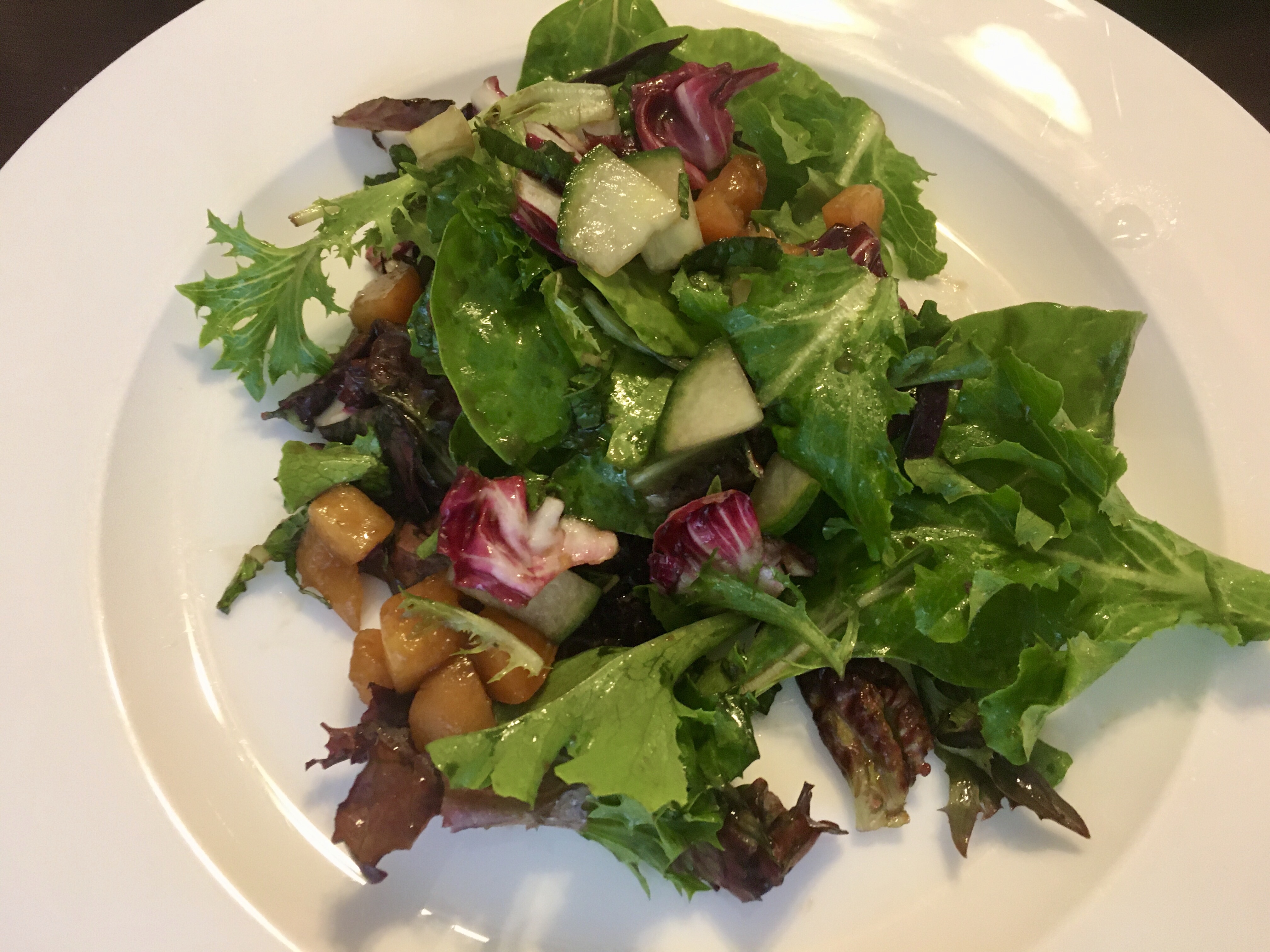 It helps to have a bowl that’s bigger than you think you need when tossing salad so that all the leaves get properly coated in the dressing. I always think of when I worked at a restaurant and would see the cooks tossing a small salad in a big stainless steel bowl. That place wasn’t great but the memory makes me happy.