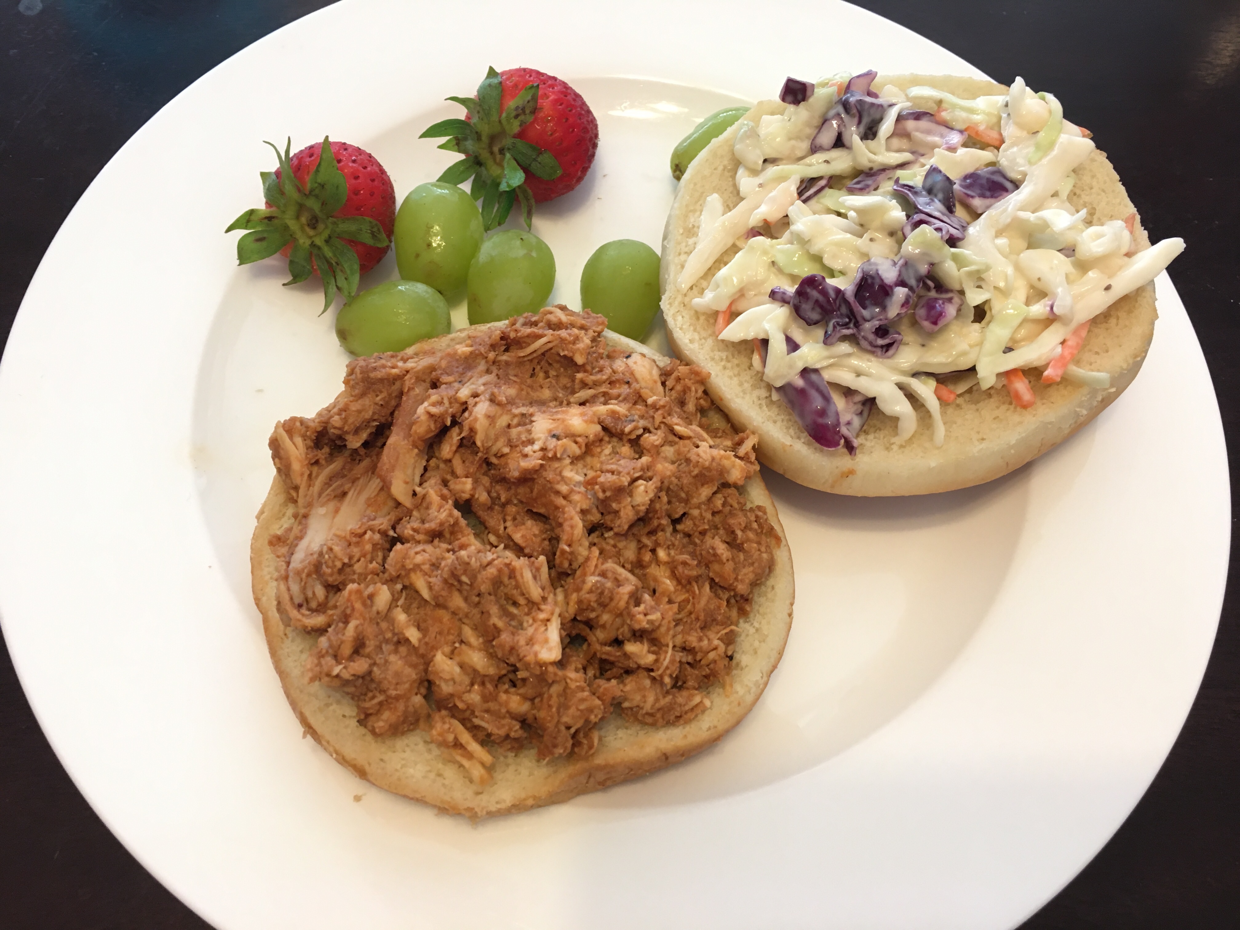 I like barbecue chicken sandwiches with or without coleslaw. This time, I made coleslaw from a kit, and it added a nice bit of tanginess and crunch to the chicken sandwiches.