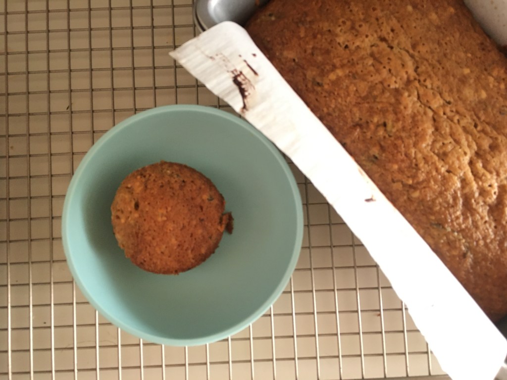 I adjusted that zucchini bread recipe slightly here. I used less oil, salt, nutmeg and walnuts and just increased the vanilla extract.