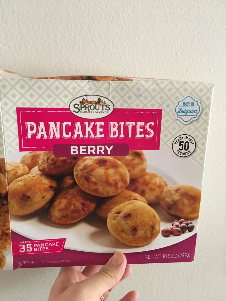 I like to have breakfast for dinner some nights when I don’t have a plan or run out of time. I always have a box of waffles in the freezer and pancake mix in the pantry for any time of day. Sprouts also carries a store-brand frozen product called pancake bites, which are pretty good for a quick meal or snack.